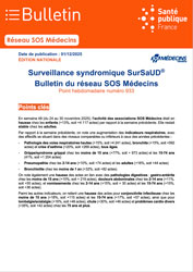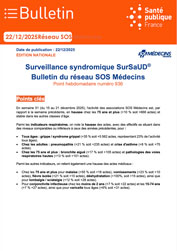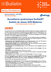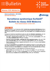 ”En semaine 50, le recours aux soins pour syndrome grippal en médecine de ville était en nette augmentation dans toutes les classes d'âge. La part d'activité pour syndrome grippal SOS Médecins a dépassé le seuil d'intensité modérée chez les moins de 15 ans et les 65 ans ou plus, et demeurait à un niveau faible chez les 15-64 ans et tous âges confondus”.