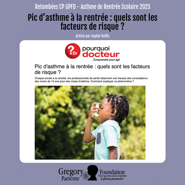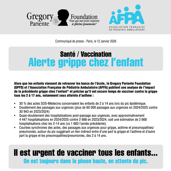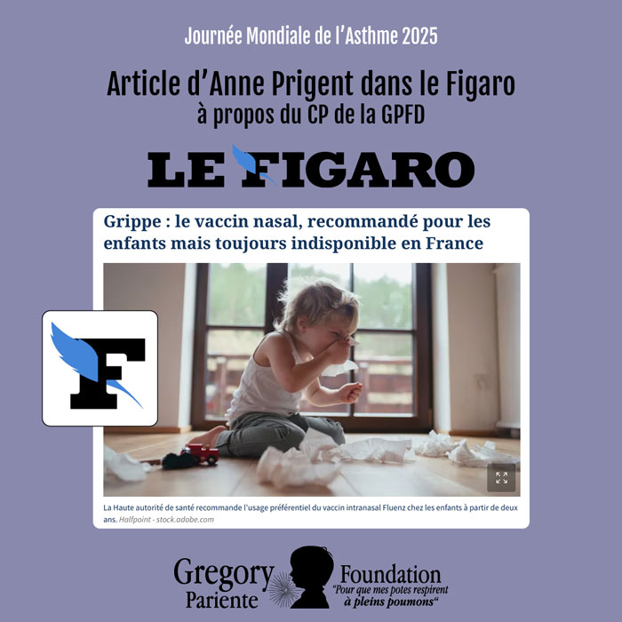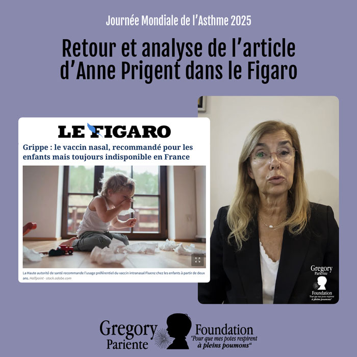 En tant que Gregory Pariente Foundation, nous nous devons d’appuyer cette demande pour que les enfants vulnérables, dont les premiers sont les enfants et adolescents asthmatiques, puissent être vaccinés avant la prochaine épidémie de grippe.