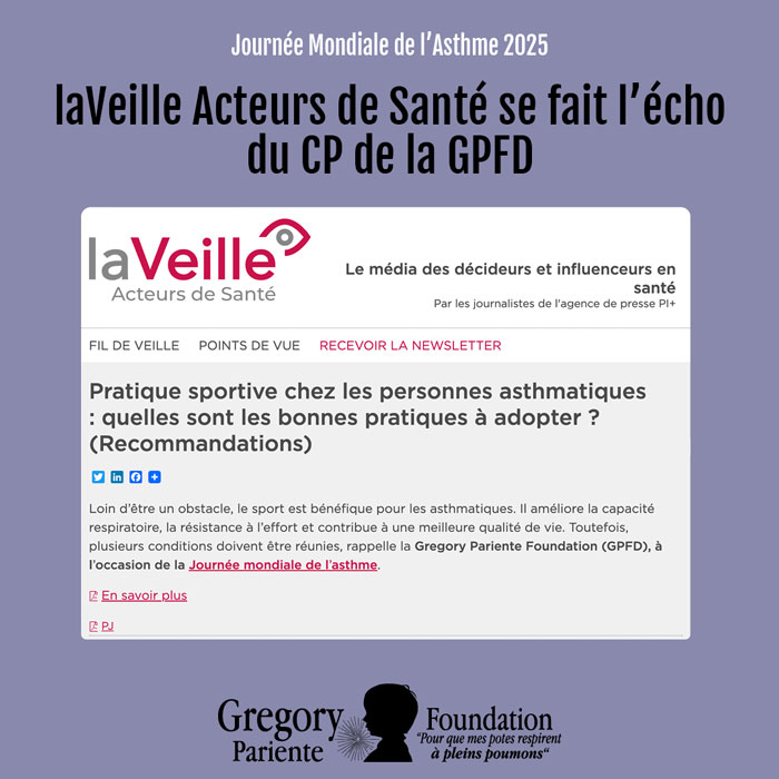 Comme chaque année, la presse régionale relaie fortement les articles concernant le communiqué de presse que produit la Gregory Pariente Foundation pour la Journée Mondiale de l'Asthme. Cette année, l'accent a été mis sur l'importance de la pratique d'un sport pour les malades...