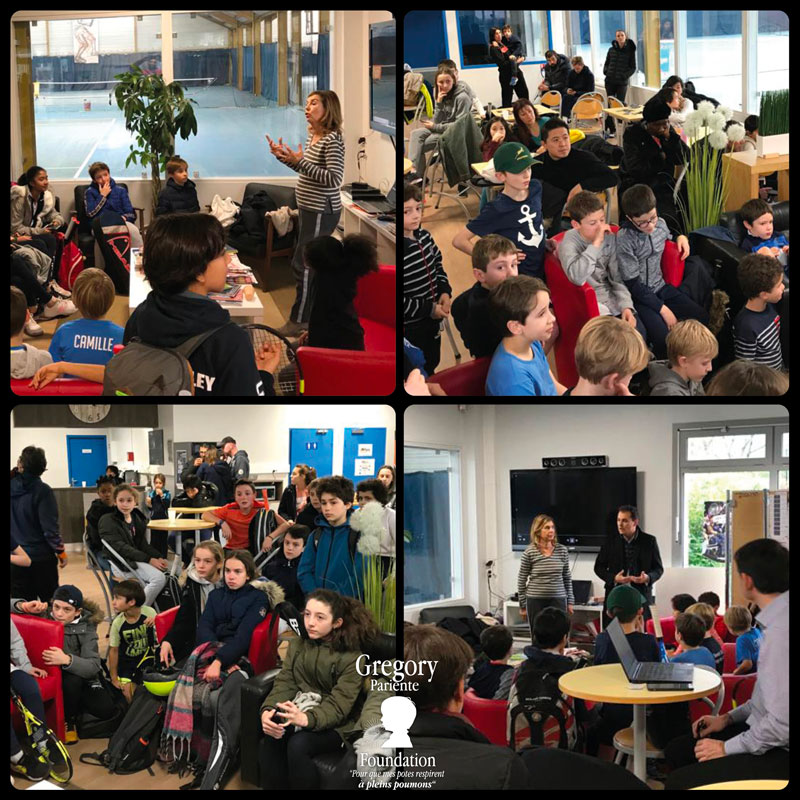 Le Mercredi 18 Décembre, le Dr. Françoise Pariente Ichou, responsable scientifique de la GPFD (Gregory Pariente Foundation) et M. Cédric Guerin, administrateur de la GPFD, sont intervenus à l’occasion de la fête de Noël du Tennis Club d’ISSY LES MOULINEAUX (TCIM). Devant environ 150 jeunes partagés en deux sessions, ils se sont partagés présentations et conseils pour bien gérer l'asthme au quotidien lorsqu'on est adolescent.