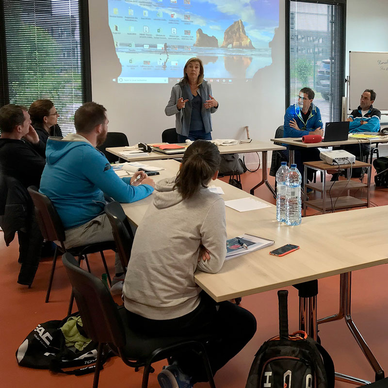 Le Jeudi 17 octobre 2019, le Dr. Françoise Pariente Ichou est intervenue au Tennis Club de Bruz (Bretagne), dans le cadre du programme de formation continue Sport Santé en présentant aux professeurs de tennis présents notre nouveau mode d'emploi pour parfaitement informer et gérer les adolescents asthmatiques. Les vidéos "La Chaise Vide" et "Sport et Asthme : Mode d'emploi pour les éducateurs sportifs" ont suscité de très nombreuses questions, témoins de leur intérêts pour les informations fournies.