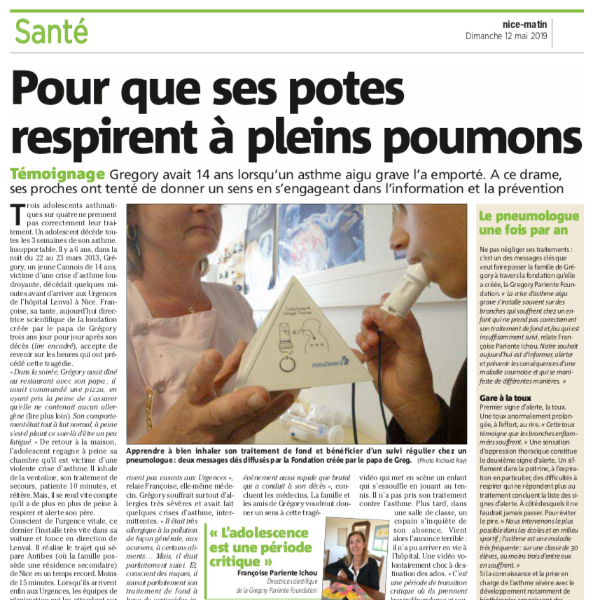 Pour la Journée Mondiale de l'Asthme, BFM à fait un reportage à propos de l'augmentation des cas d'asthme qui sont souvent liés à la polution. Pierre Pariente, fondateur de la Gregory Pariente Foundation, nous explique à quel point une crise aiguë imprévisible peut tourner au drame...