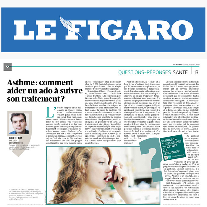 Très intéressante interview du Dr. Pariente Ichou à propos de l'asthme chez l'adolescent. Près d'une demi-heure d'explications fondamentales pour les asthmatiques et leur entourage… Il faut voir une fois par an un pneumologue.