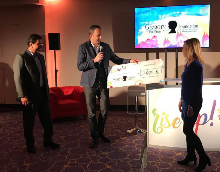 Nous remercions beaucoup AstraZeneca pour leur soutien financier, mais plus encore pour leur soutien moral. Nous prenons cela pour un encouragement à toujours mieux faire afin que "les potes de Grégory continuent de respirer à plein poumons".