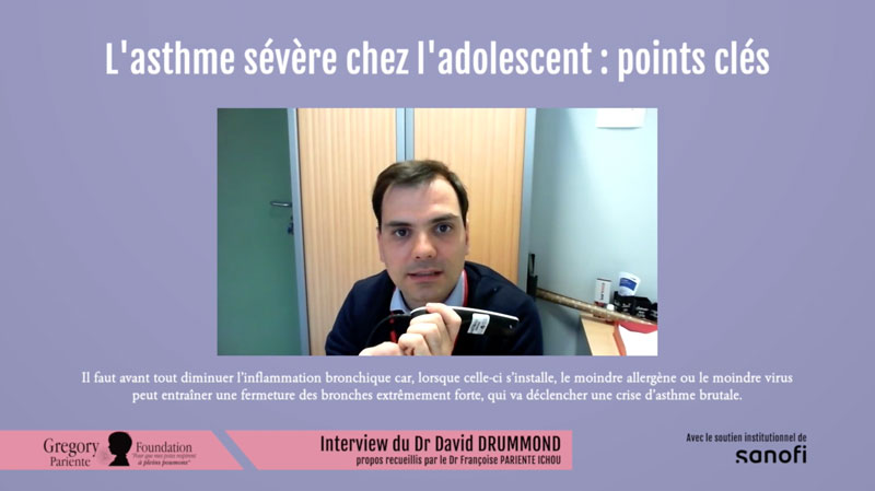 Le Dr. David Drummond, pneumo-pédiatre hospitalier, interviewé par le Dr. Françoise Pariente Ichou, suit notamment les adolescents asthmatiques. Il nous explique comment faire pour éviter les exacerbations brutales, violentes et dangereuses (avec risque de décès), ou des exacerbations trop répétées. Les deux peuvent conduire aux urgences avec parfois des hospitalisations. Il nous explique également comment, en pratique, il oriente son choix vers l’une des biothérapies disponibles pour un adolescent asthmatique sévère.