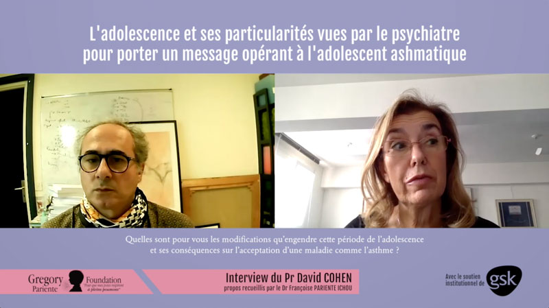 Le Pr. David Cohen (Psychiatre de l’enfant et de l’adolescent), le Dr. David Drummond (Pneumo-pédiatre), le Pr. Camille Taillé (Pneumologue du grand adolescent) et le Dr. Hervé Haas (Urgentiste-pédiatre) sont interviewés par le Dr. Françoise Pariente Ichou de la GPFD pour nous parler de l'Adolescent et l'Asthme.