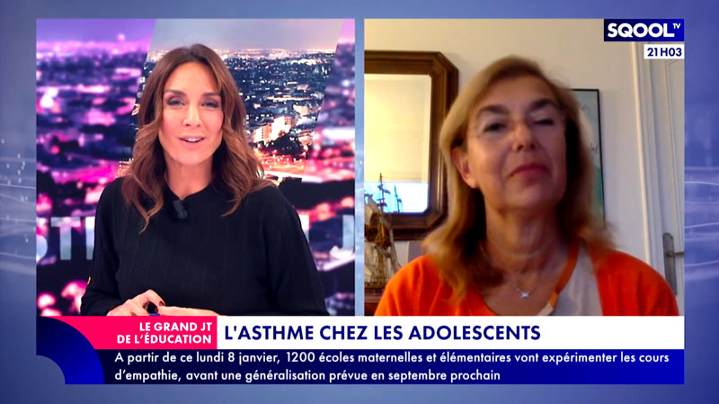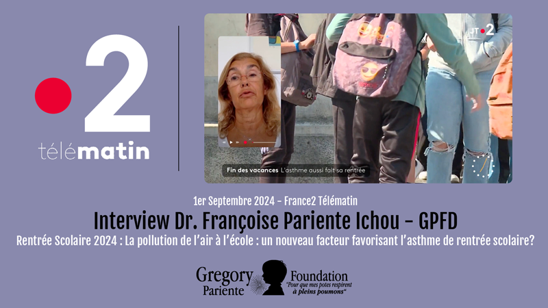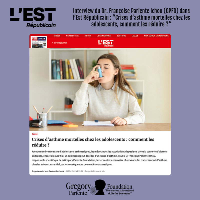 L'asthme de l'adolescent est un sujet de préoccupation majeure qui retient de plus en plus l’attention des médias. Et c’est une bonne chose. Plus on parlera de cette maladie qui est une entité à part au sein de la maladie asthmatique et plus on se sera donné les moyens de faire baisser le nombre de décès annuels. C'est la mission que s'est donné la Gregory Pariente Foundation (GPFD). En témoigne cette nouvelle interview du Dr. Françoise Pariente Ichou dans l'émission "Le grand JT de l'Éducation". C'est Virginie Guillaume qui interroge le responsable scientifique de la GPFD sur les dangers de l'asthme chez l'adolescent. Cet entretien de 10 minutes est un condensé de tout ce qu'il faut savoir. La journaliste est revenue sur le clip "L'Ado qui n'écoutait pas son asthme" conçu par la GPFD pour la Journée Mondiale de la l'Asthme 2021 (lien ci-dessous). Un grand merci à toutes les deux.