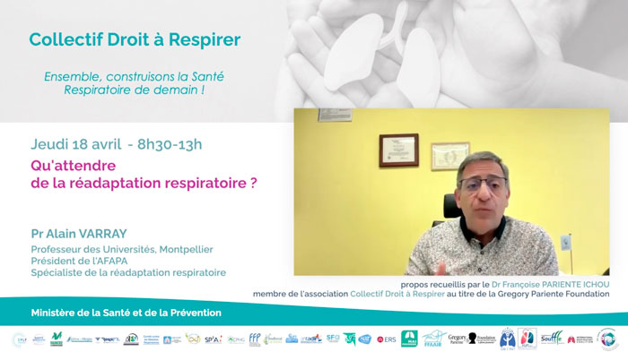 De nombreuses interventions sont aussi programmées en vidéo: Le Pr. François Carré (Cardiologue, Médecin du sport, Spécialiste de l'activité physique adaptée - APA) et le Pr. Alain VARRAY (Professeur des Universités, Montpellier, Président de l'Association Francophone en Activité Physique Adaptée (AFAPA), Spécialiste de la réadaptation respiratoire).