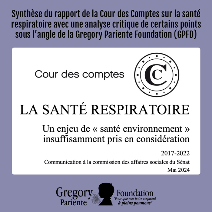 Le rapport de la Cour des comptes de mai 2024 sur la santé respiratoire avec un focus sur la BPCO, l’asthme et le cancer bronchique. Mais nous n’oublions pas les malades rares respiratoires chroniques dont la fibrose pulmonaire idiopathique.