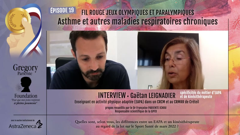 Tous les 15 jours, de fin décembre aux Jeux Olympiques et Paralympiques 2024, nous diffuserons un nouvel épisode sous la forme d'une vidéo qui donne la parole à un expert impliqué dans le développement de l’activité physique au sens large (activité physique et sportive, activité physique adaptée) issu du monde médical (pneumologue, médecin du sport…), issu du monde associatif (patients, patients experts, président d’association de patients) et du monde éducatif (éducateur physique et sportif, éducateurs en activité physiqjue adapté…).