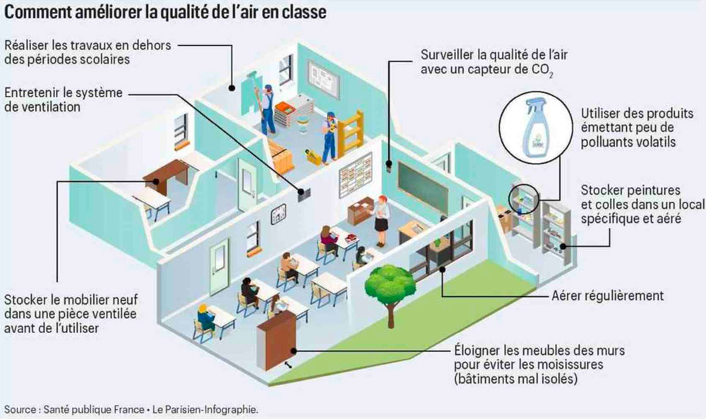 "Vu l’enjeu de santé publique de la qualité de l’air dans les établissements scolaires, où 12 millions d’élèves font leur rentrée chaque année, il est important de poursuivre les actions pour réduire les sources d’exposition et améliorer l’aération des salles de classe, insiste l’agence sanitaire".