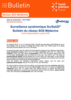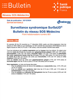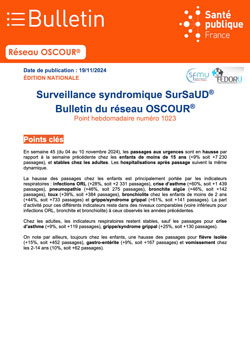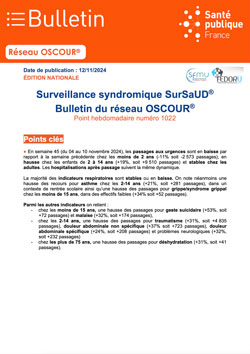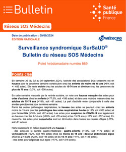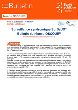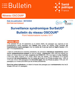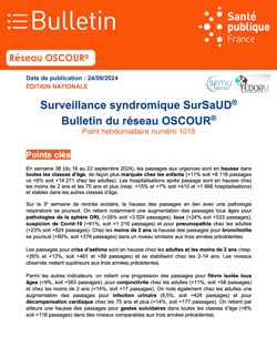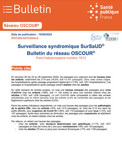 Pour ceux qui veulent approfondir le sujet, vous pouvez vous plonger dans les deux bulletins qui accompagnent cet article: - Le bulletin hebdomadaire du réseau SOS-Médecins en semaine 39/2024 - Le bulletin hebdomadaire du réseau OSCOURS qui correspond aux passages aux urgences et aux hospitalisations après passages aux urgences en semaine 39/2024