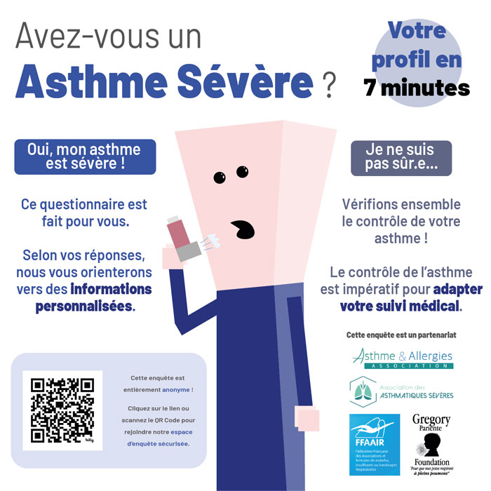 Si vous êtes asthmatique sévère, ou si vous avez un proche qui est asthmatique sévère, nous vous invitons à participer à cette étude en scannant le QR code ou en cliquant sur le bouton ci-dessous.