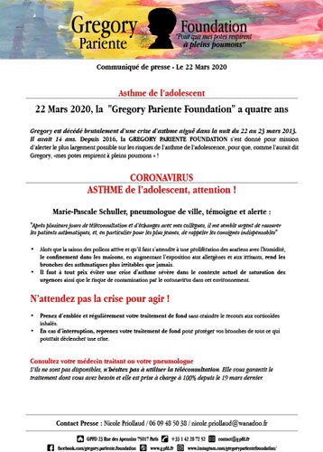 - Il faut à tout prix éviter une crise d'asthme sévère dans le contexte actuel de saturation des urgences ainsi que le risque de contamination par le coronavirus dans cet environnement.